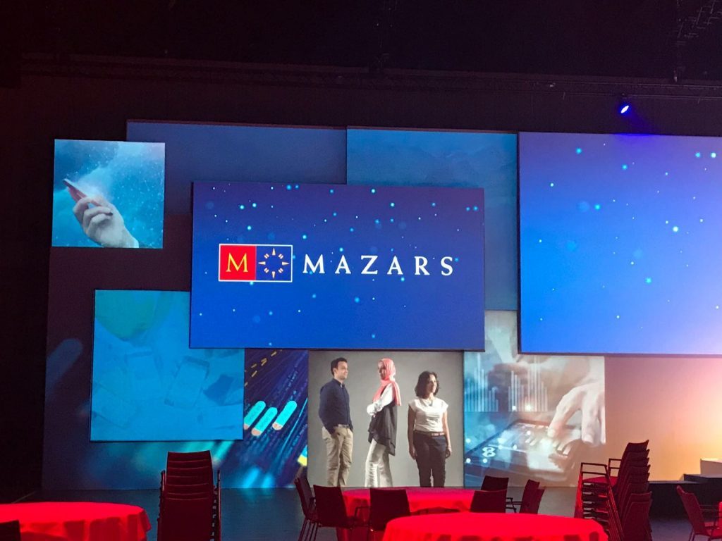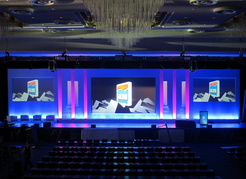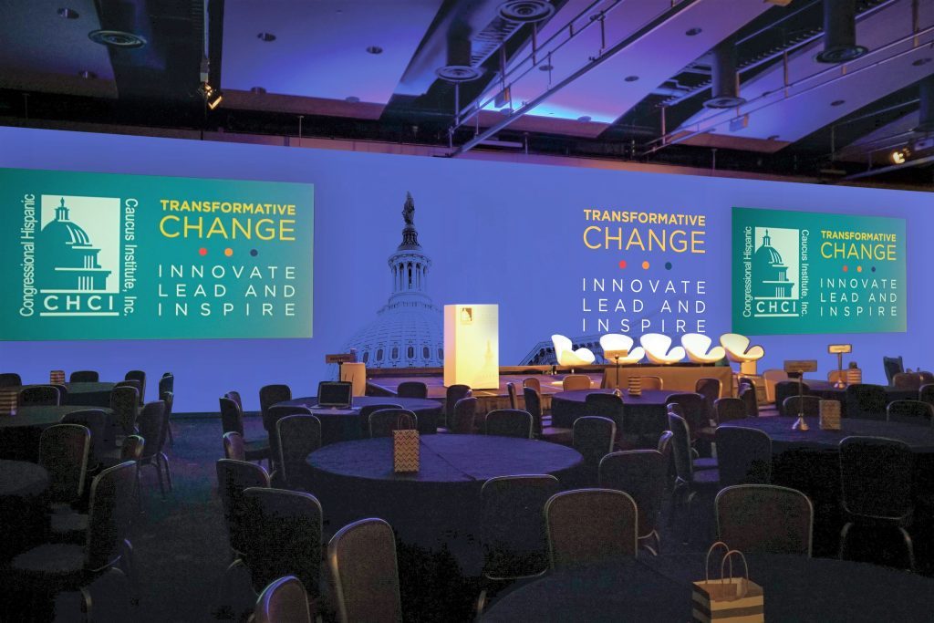Graphic Print Dual Screen Av-Drop Modular Backdrop for corporate event with stage