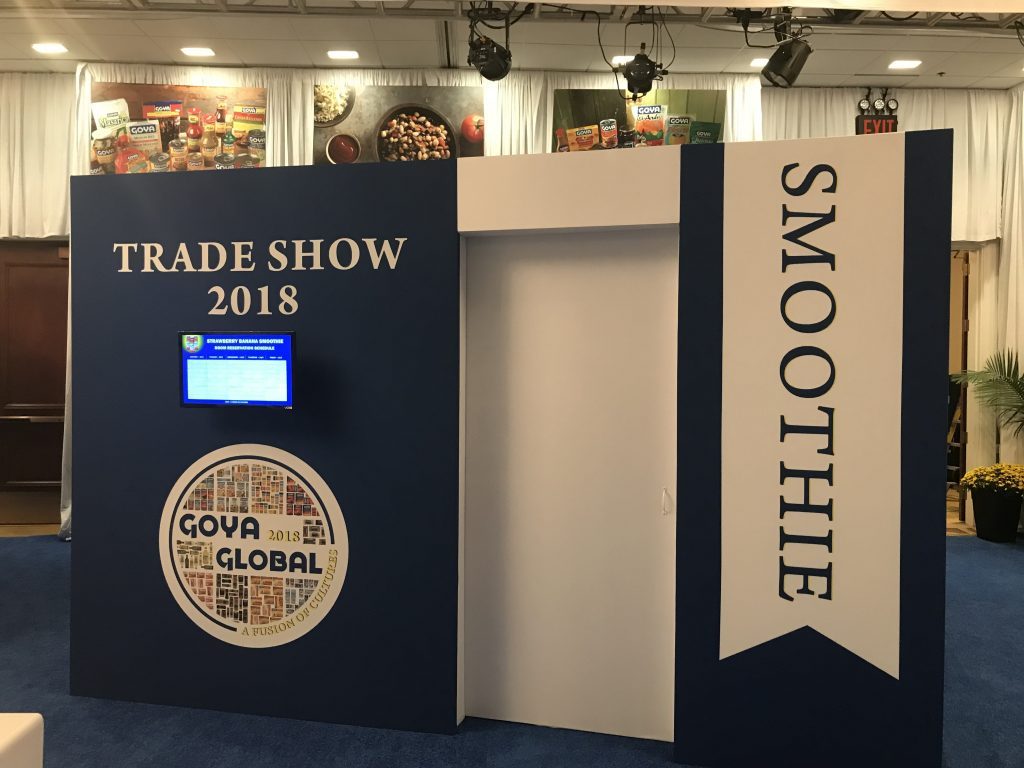 Graphic Print double sided AV-Drop Modular backdrop booths for Goya 2019 trade show with sliding door and monitor mounts