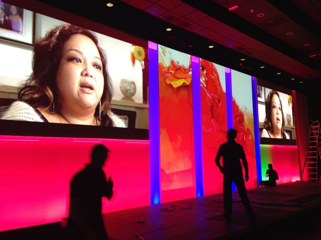 Dual Screen Graphic Print AV-Drop Modular Backdrop behind stage for corporate event