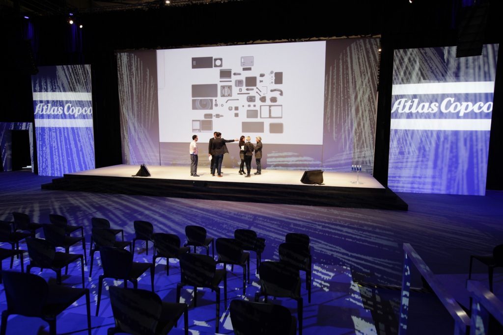 Angled flats with Dual Screen AV-Drop Modular backdrop for corporate event