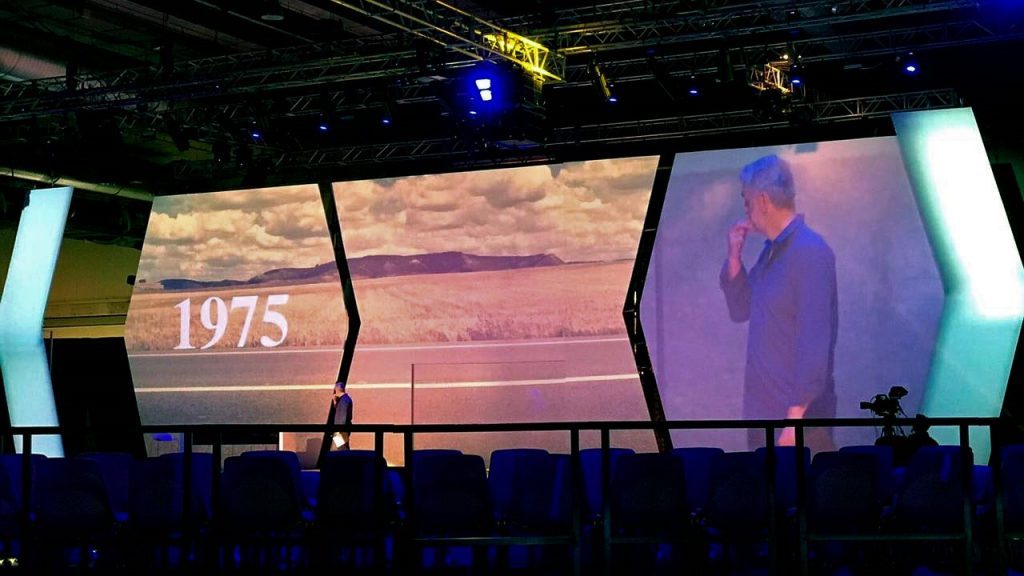 Seamless white AV-Drop Modular backdrop used as front projection screen surface for corporate event