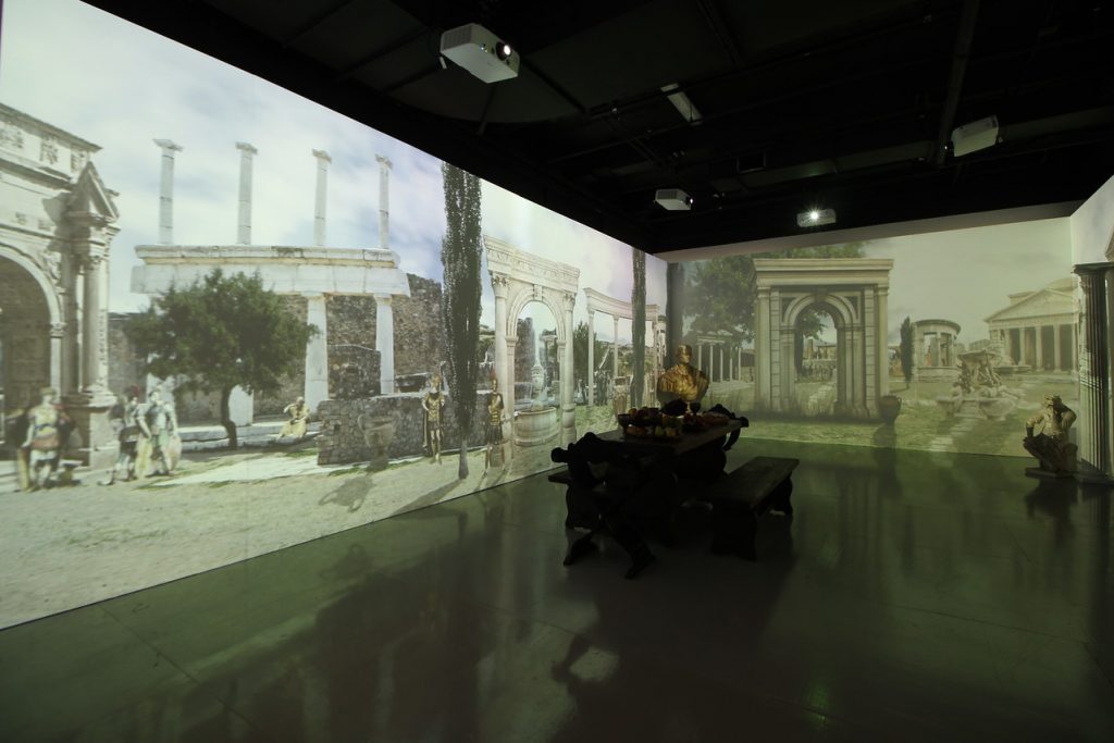White AV-Drop Modular backdrop with seams for front projection video mapping for high end party